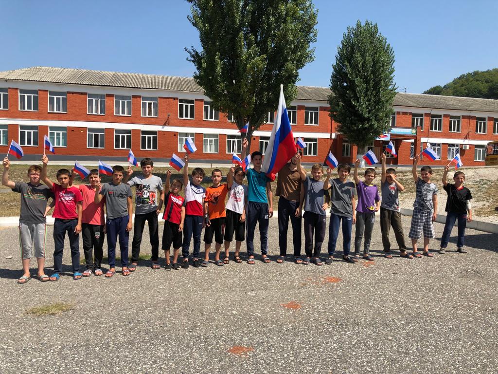 Сегодня 22.08.2019 года в нашей школе прошло мероприятие посвященное Дню Государственного Флага Российской Федерации, в которой приняли участие спортсмены школьного спортивного клуба "Къонах".