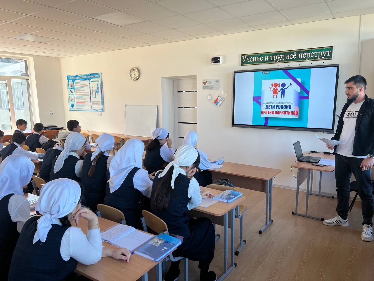22.11.2023Отделом в Шалинском районе УФСБ России по Чеченской Республике совместно с МУ «Отдел образования Шалинского муниципального района Чеченской Республики» проведено профилактическое мероприятие в МБОУ "СОШ с. Дуба-Юрт" на тему: « Ответственность за пропаганду распространения и употребления наркотических средств и психотропных веществ среди несовершеннолетних».
