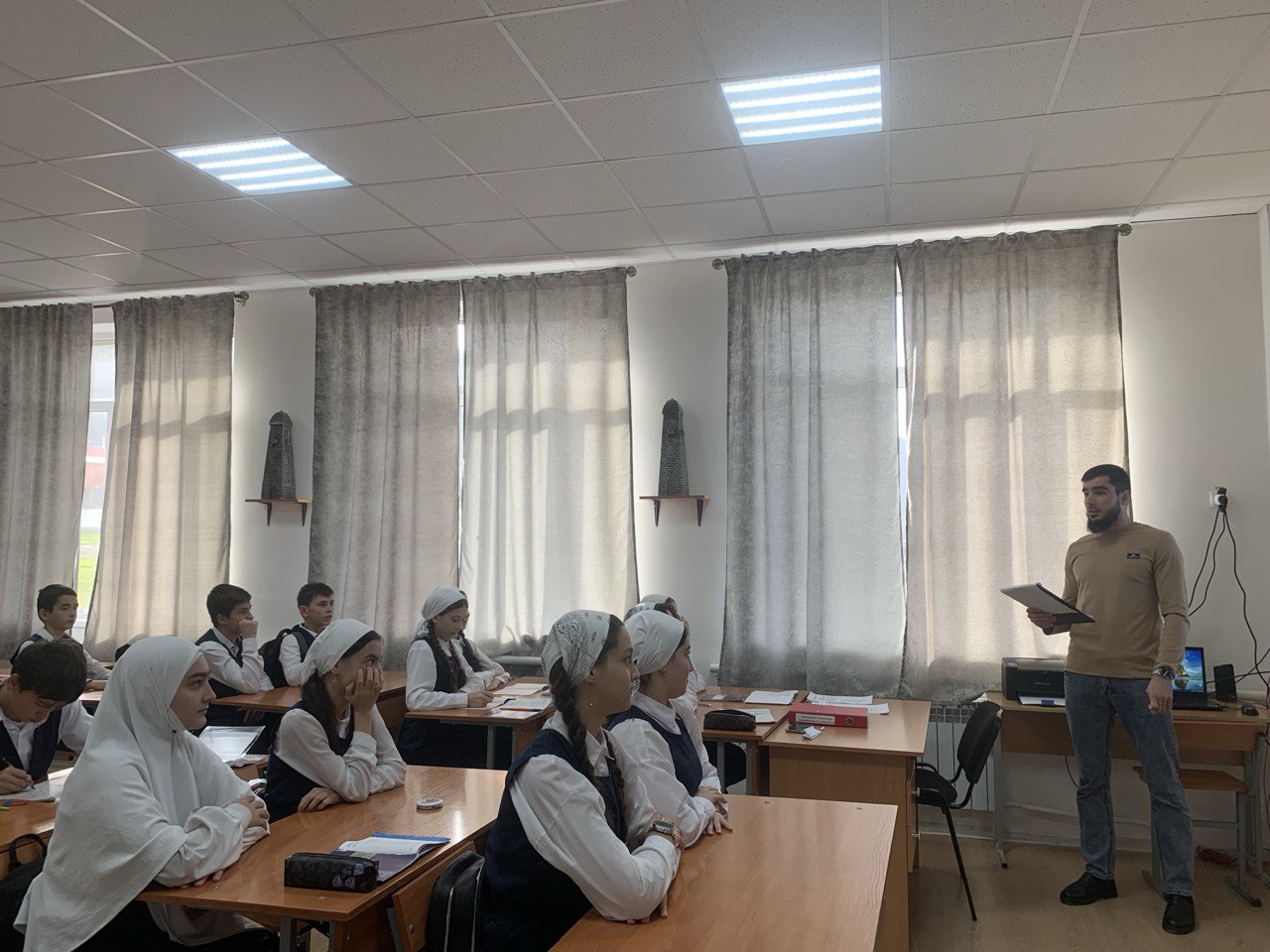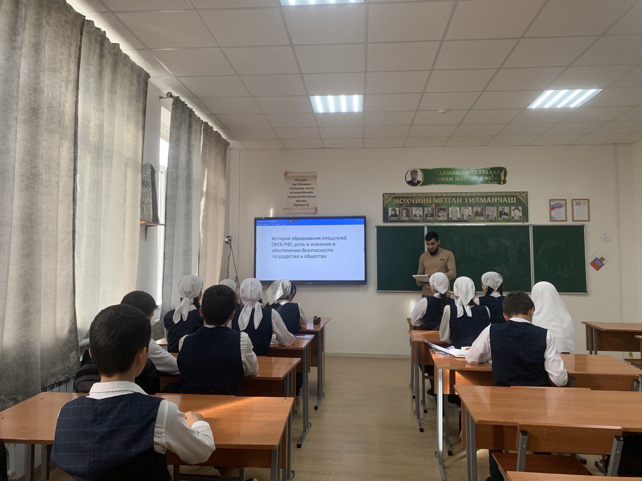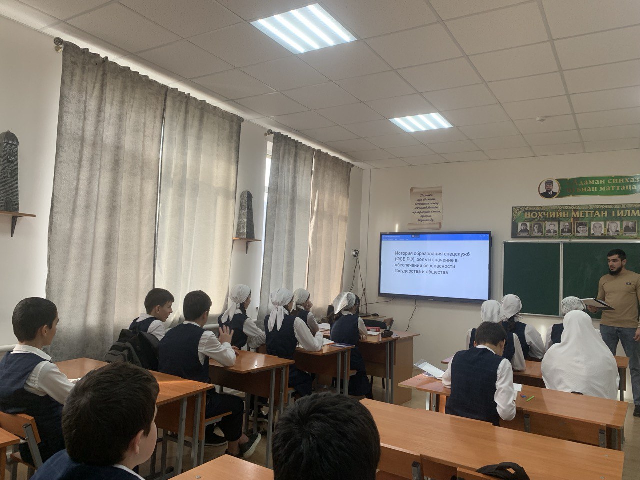 30.11.2023Отделом в Шалинском районе УФСБ России по Чеченской Республике совместно с МУ «Отдел образования Шалинского муниципального района Чеченской Республики» проведено профилактическое мероприятие в МБОУ "СОШ с. Дуба-Юрт" на тему: «История образования спецслужб (ФСБ РФ), роль и значение в обеспечении безопасности государства и общества.».