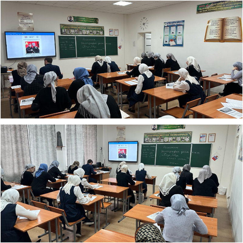 16.02.2024Сегодня, 16 февраля в ЧР проведен Региональный этнографический диктант "Беза,бовза ненан мотт!" Наша школа тоже приняла участие в данной акции. 52 человека из числа педработников,администрации, учащихся в течение 2-х часов отвечали на 80 вопросов диктанта. Такие мероприятия повышают интерес к изучению родного языка, мотивируют на более глубокое изучение чеченского языка и литературы. Посредством родного языка человек приобщается к культуре, обычаям и традициям своего народа.