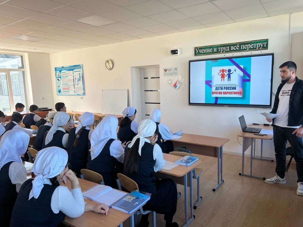 11.03.2024Отделом в Шалинском районе УФСБ России по Чеченской Республике совместно с МУ «Отдел образования Шалинского муниципального района Чеченской Республики» проведено профилактическое мероприятие в МБОУ "СОШ с. Дуба-Юрт" на тему: « Ответственность за пропаганду распространения и употребления наркотических средств и психотропных веществ среди несовершеннолетних».