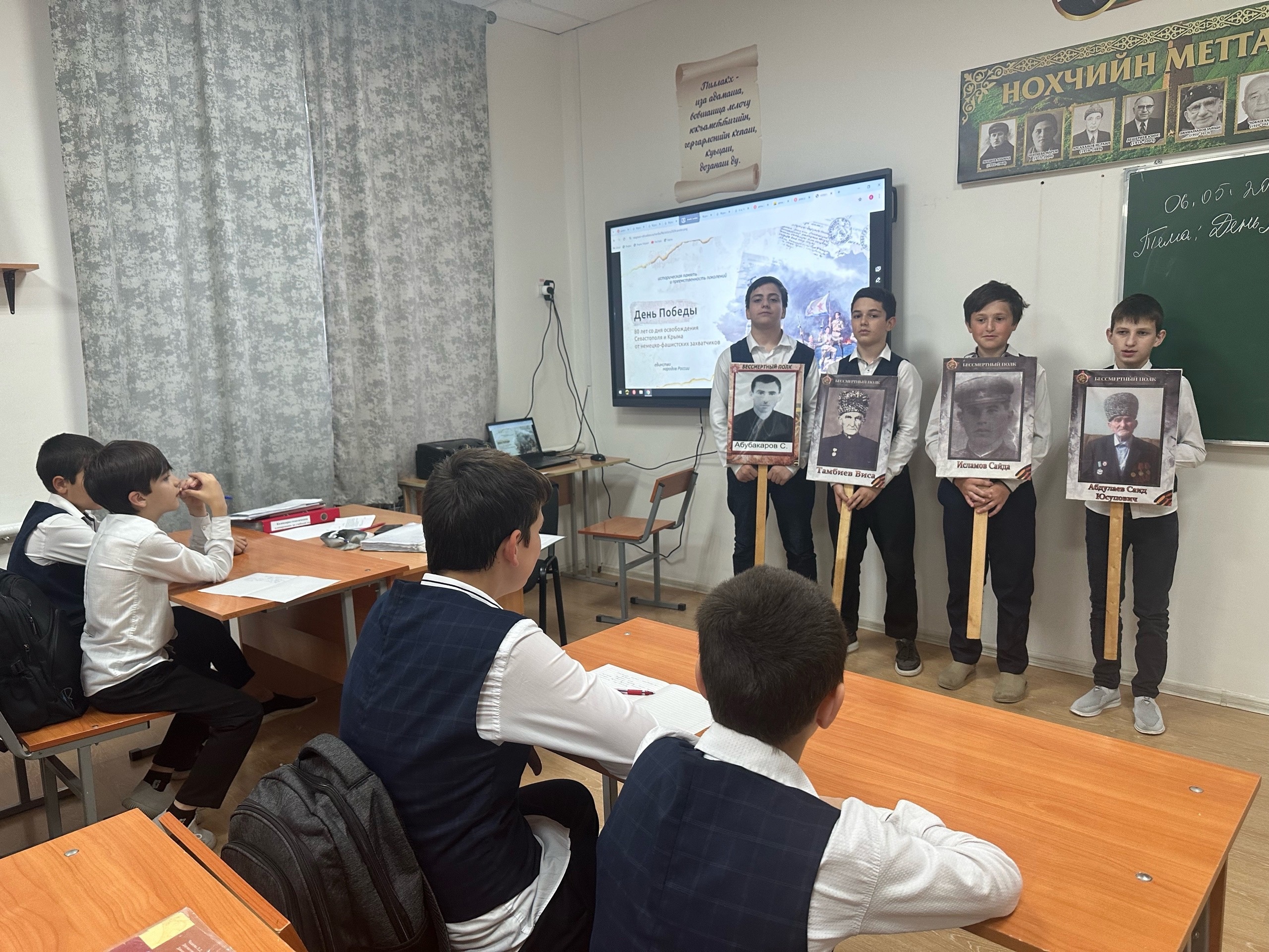 06.05.2024Традиционно новая учебная неделя в МБОУ «СОШ с. Дуба-Юрт» началась с церемонии поднятия флагов и исполнения гимнов. После линейки прошли занятия "Разговоры о важном". Внеурочное занятие было посвящено одному из важнейших событий в современной российской истории - Дню Победы в Великой Отечественной войне.На занятии детям напомнили и о другой важной дате, связанной с Великой Отечественной войной - 80-летии со дня освобождения Севастополя и Крыма от фашистских захватчиков. Севастополь и Крым вошли в историю Великой Отечественной войны как символы стойкости и непоколебимости духа. Сражения в этом регионе были одними из самых ожесточенных и кровопролитных в ходе всей войны.В течение многих месяцев советские воины, стоя на защите своей родины, вынуждены были противостоять многочисленным атакам противника, выживая в нечеловеческих условиях блокады и бомбардировок.«День Победы» - священная дата, память о которой передаётся от поколения к поколению. Важно помнить нашу историю и чтить память всех людей, перенёсших тяготы войны. Ребята из 5 и 6 классов рассказали о своих прадедушках и прабабушках, о их подвигах и судьбах.Также посмотрели видео с письмами времён войны, которые передали атмосферу того времени и показали, насколько важно было поддерживать друг друга в трудные времена. Я мая - особый праздник для нашей страны, это праздник памяти, чести, достоинства, праздник слёз радости и скорби одновременно.Ежегодно 9 мая мы вспоминаем о сражениях великой отечественной войны, о мужестве и героизме воинов-освободителей, отдавших свои жизни за жизнь и свободу будущих поколений. Эта страшная война коснулась каждой семьи, каждого села и города в нашей стране.В конце урока мы обсудили, как каждый из нас может внести свой вклад в сохранение исторической памяти и празднование дня победы.
