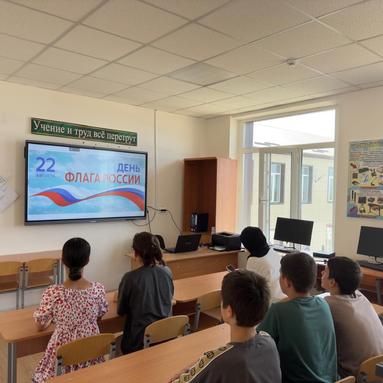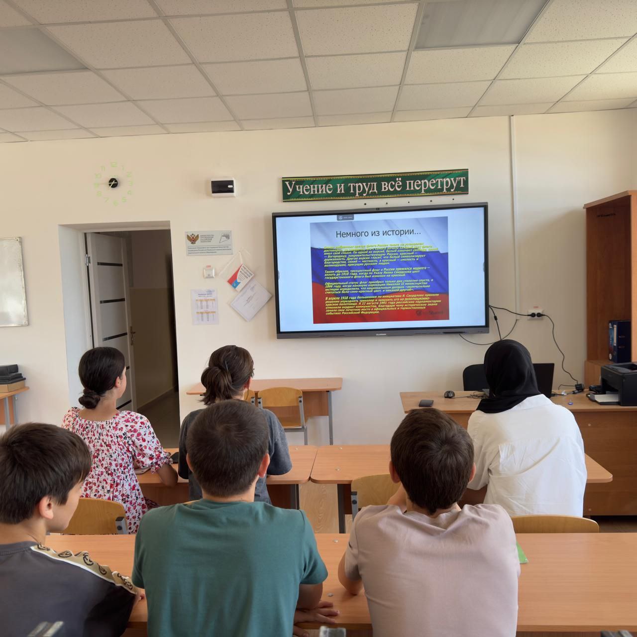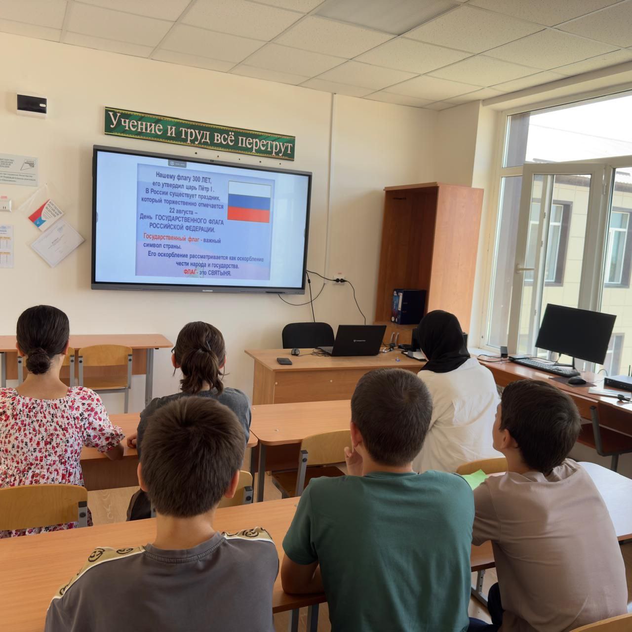 В честь Дня Государственного флага Российской Федерации учитель обществознания Задаева А.И провела презентацию ,посвящённую этой дате. Дети узнали историю этого праздника,что символизируют цвета флага, чем важен День флага для россиян... Российский триколор-один из важнейших символов страны.