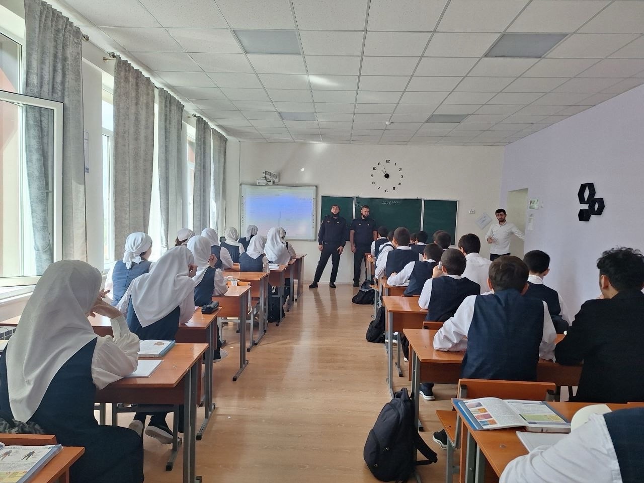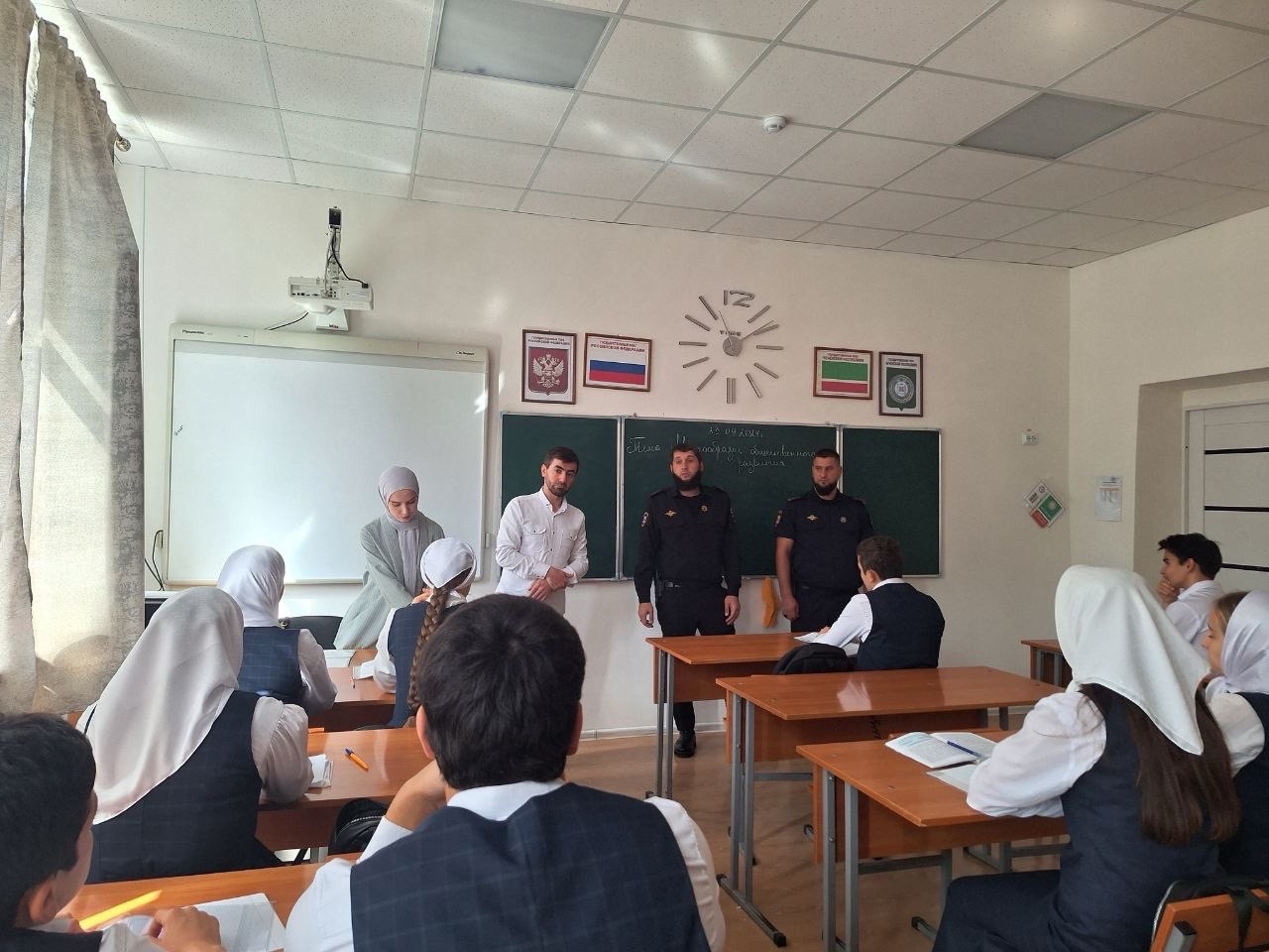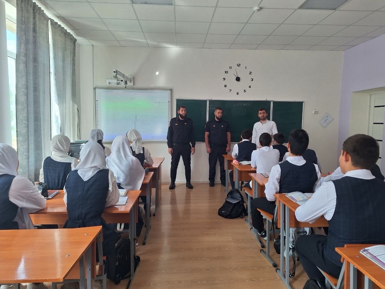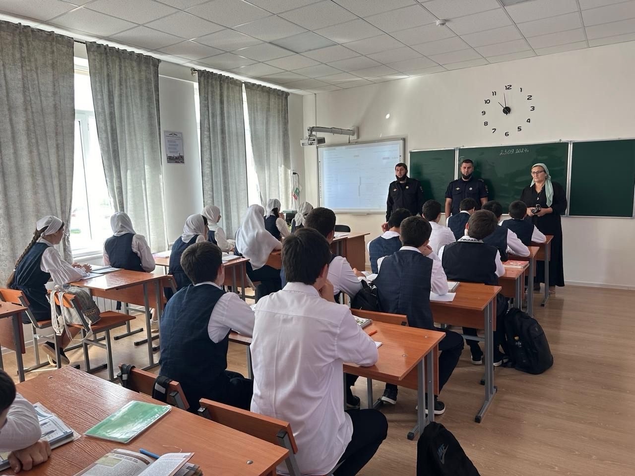 23.09.2024 нашу школу посетили инспектор ПДН старший лейтенант полиции Пайтаев З.А и лейтенант полиции Бегуев Н-М.Они провели профилактические беседы с учащимися 7-11-х классов с целью противодействия экстремизму и терроризму.