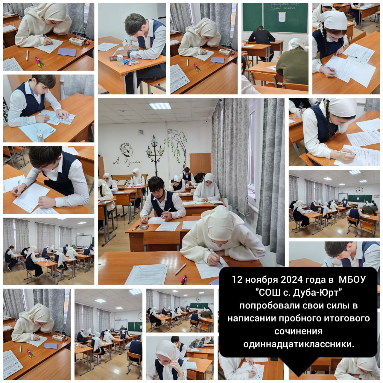 05.11.202412-го ноября в МБОУ «СОШ с. Дуба-Юрт» попробовали свои силы в написании итогового сочинения одиннадцатиклассники. Тренировочное мероприятие проводилось по плану школы с целью выяснения психологической и эмоциональной нагрузки обучающихся во время подготовки к ГИА-2025. Процедура испытания была максимально приближена к настоящей. Проведение пробного сочинения позволило выпускникам почувствовать атмосферу этого важного события.