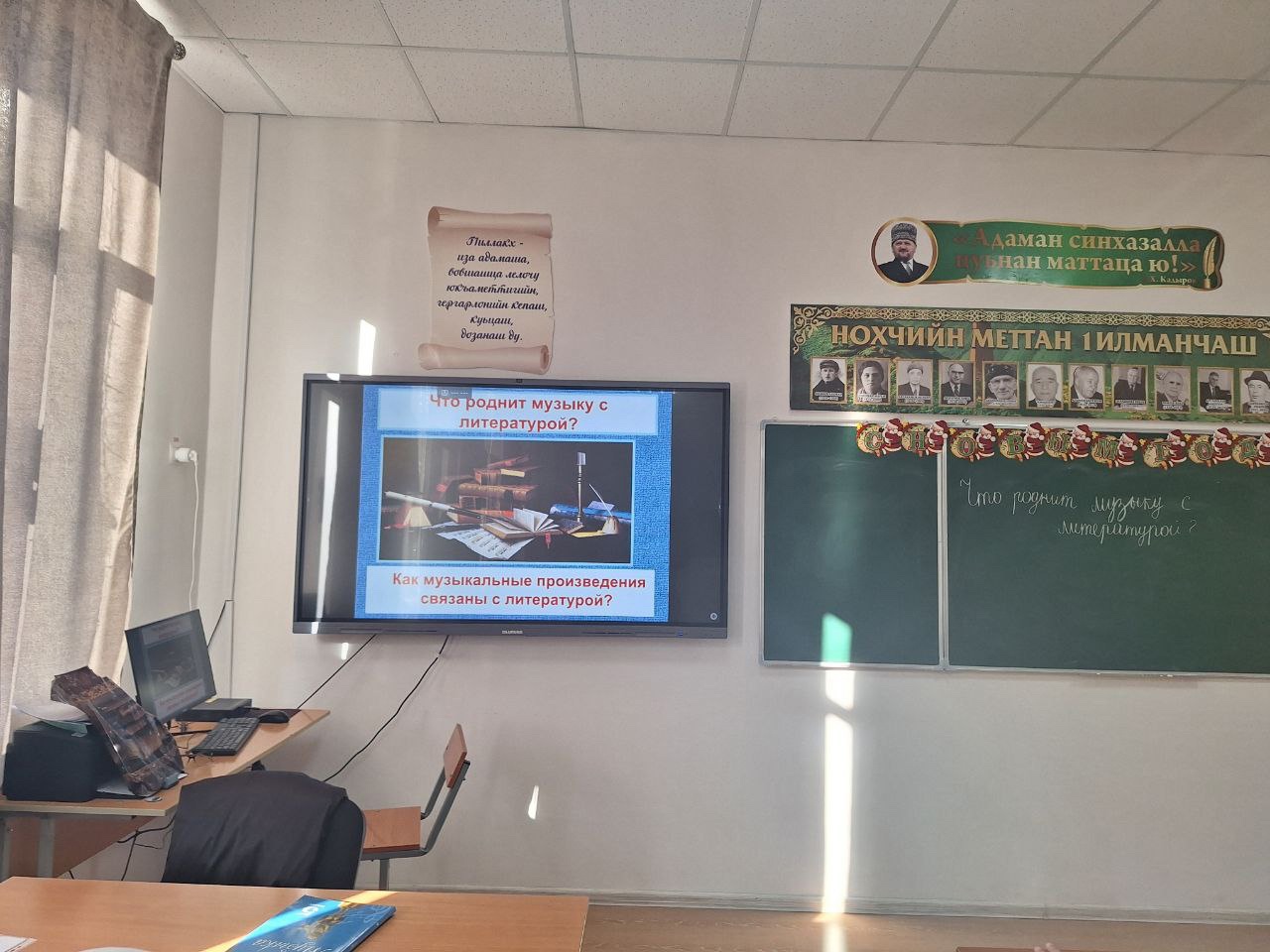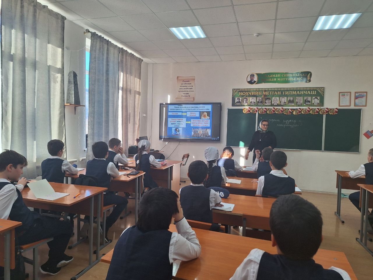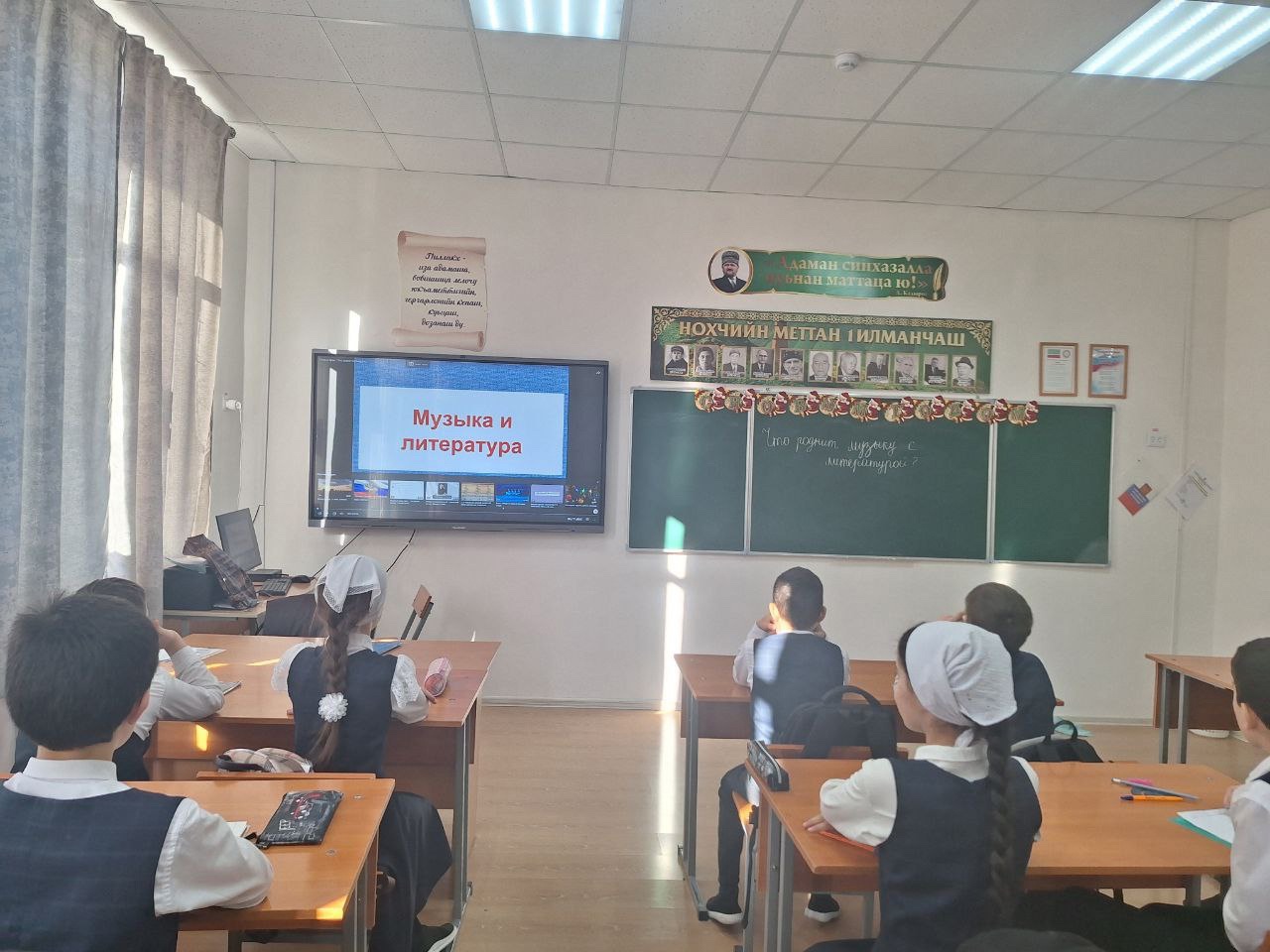 В рамках метапредметной недели в МБОУ"СОШ с.Дуба-юрт "учитель музыки Заурбекова М.Р.провела в 5 б классе интегрированный урок на тему "Что роднит музыку с литературой?".Цель данного урока-показать взаимосвязь музыки и литературы, развивать у детей воображение через восприятие музыки и поэзии.