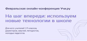 19.02.2025На Учи.ру продолжается регистрация на бесплатную конференцию «На шаг впереди: используем новые технологии в школе». Мероприятие пройдет 20 февраля с 11:00 до 17:40 мск: https://vk.cc/cFYCA4