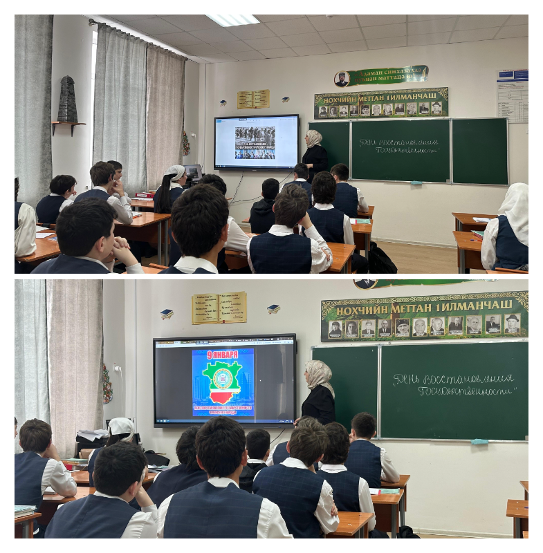 09.01.20269 января в Чеченской Республике отмечается День восстановления государственности чеченского народа, которое имеет особое историческое значение для всех чеченцев.Начало праздника Дня восстановления государственности чеченского народа было положена в 2010 году Указом Главы Чеченской Республики Рамзана Ахматовича Кадырова. И связи с этим Абдурзакова К.И. провела беседу с обучающимися 8-х классов.